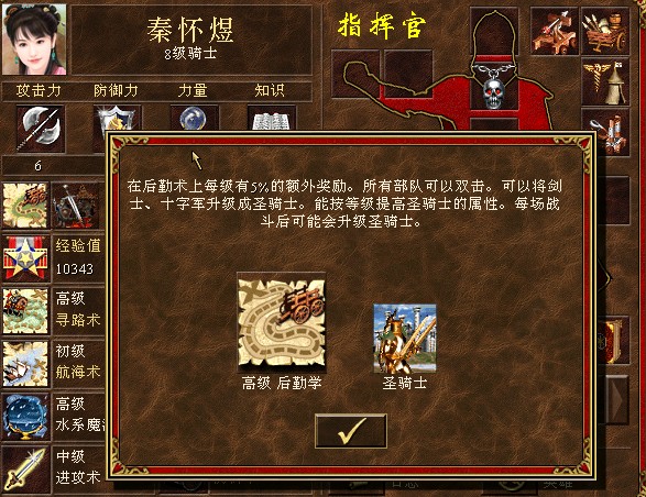 一路逃跑,路上的那个食人魔其实是指挥官,直接杀过去就拿到了,男主的指挥官开启并自动根据开局选择(我选的是全宝物)获得加成。