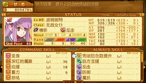魔力转换:将MAT转为攻击力。一直有人说法系后期乏力,但有了这个技能,MAT堆高,一样可以转换为物理输出。虽然说由于武器的原因,堆AT要比堆MAT容易(一般AT都要比MTA高150点以上),但是,打无限模式时你就会知道,敌人回避非常高,物攻经常MISS,却魔力转换却没有MISS一说。又有人说法师防御低,你敢放心向前冲吗?保护技能是做啥的?其二,大小姐和天使都可以远程攻击。