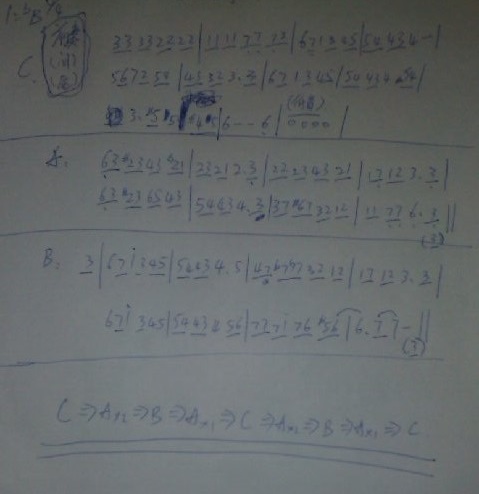 听来听去,低音反复是6236 623426(大概是这样,拿不准,因为扒谱时记和弦走向的那张纸没带在身上)