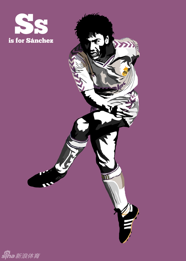 英国插画师史蒂夫·威尔士(Steve Welsh)设计了一套精美插画,主题为“F就是足球”(F is for Football),共有26张,每一张各有一位球员,他们代表了A到Z。目前,他已在网上公布了18张,每一张都极为精美。