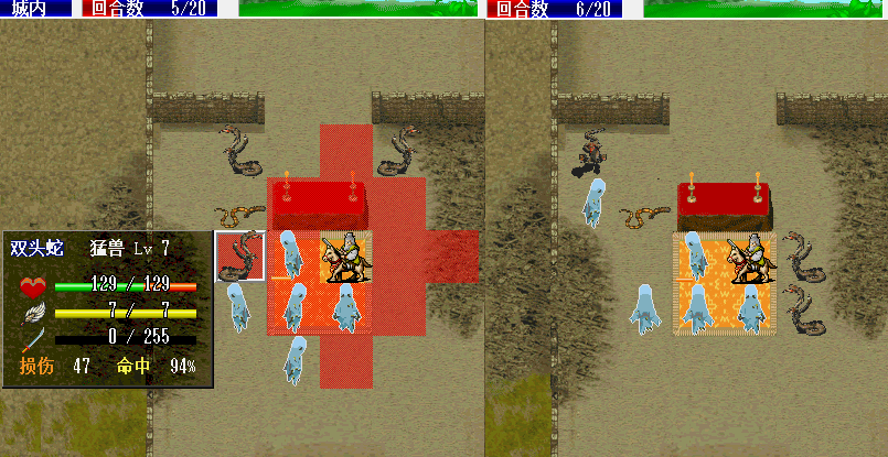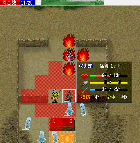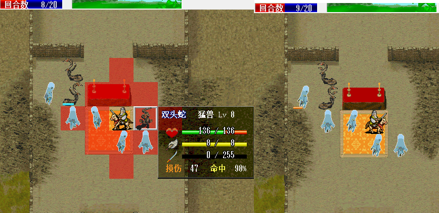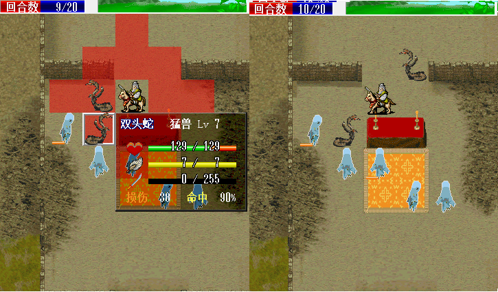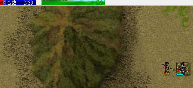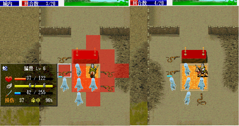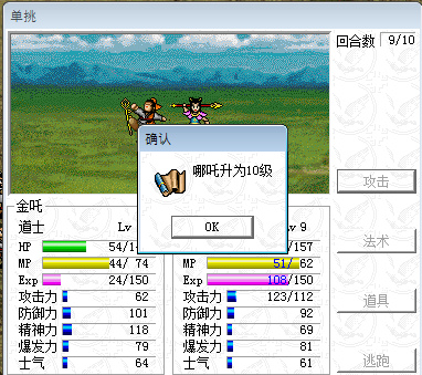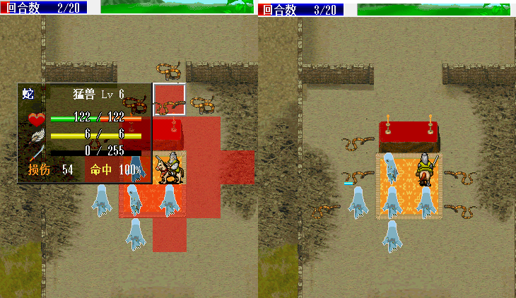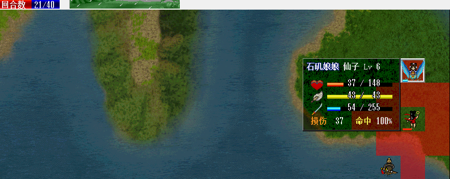 石怪石矶到达中心岛,石矶会繞到哪吒的前方兩格攻击,哪吒反击不到石矶,李靖記住加血,哪吒代師傅火燒石矶