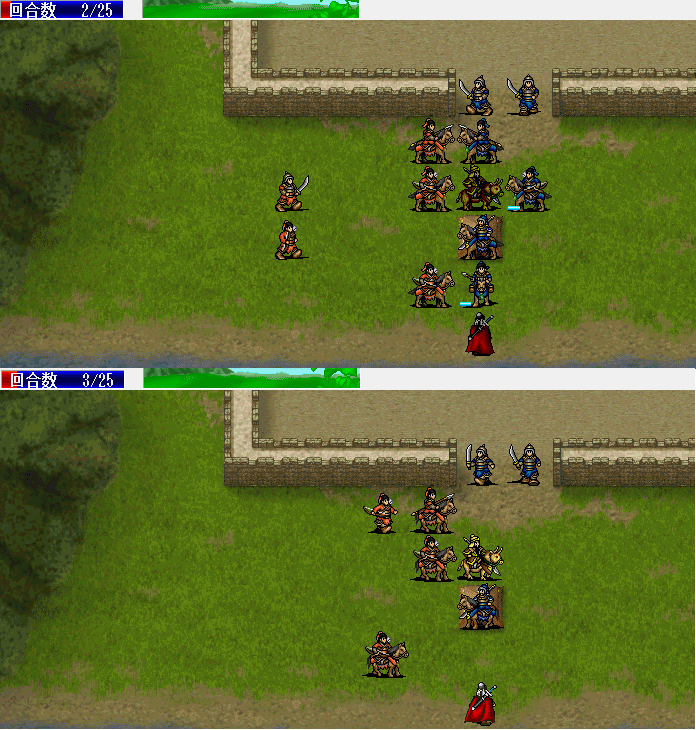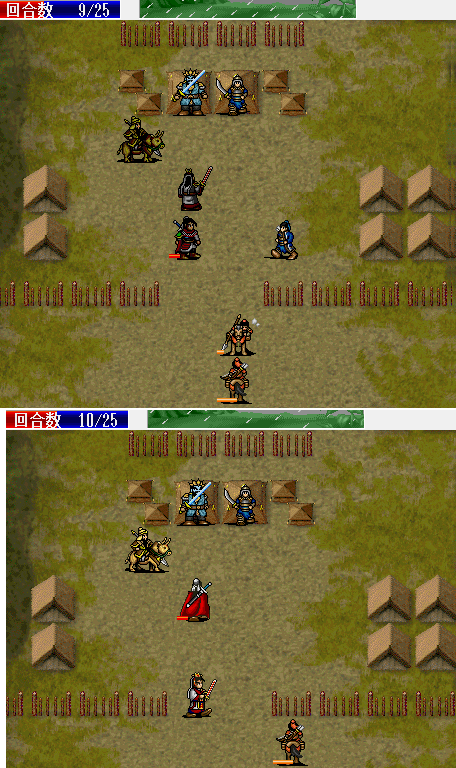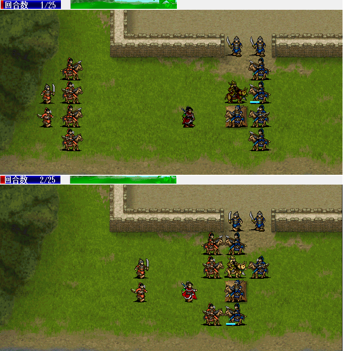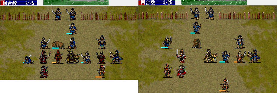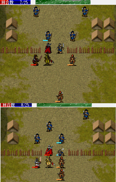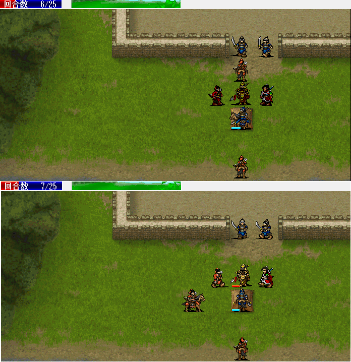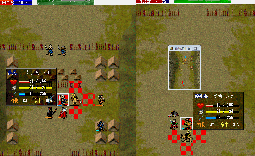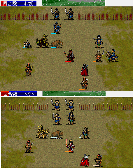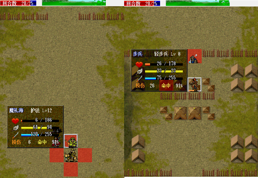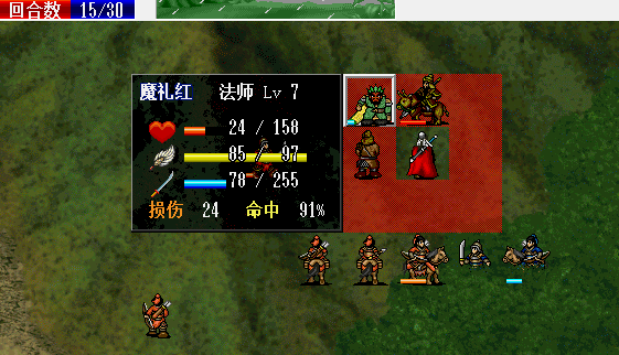 围攻击退魔礼青旁边的步兵。11回合击退天化暴击击退魔礼青