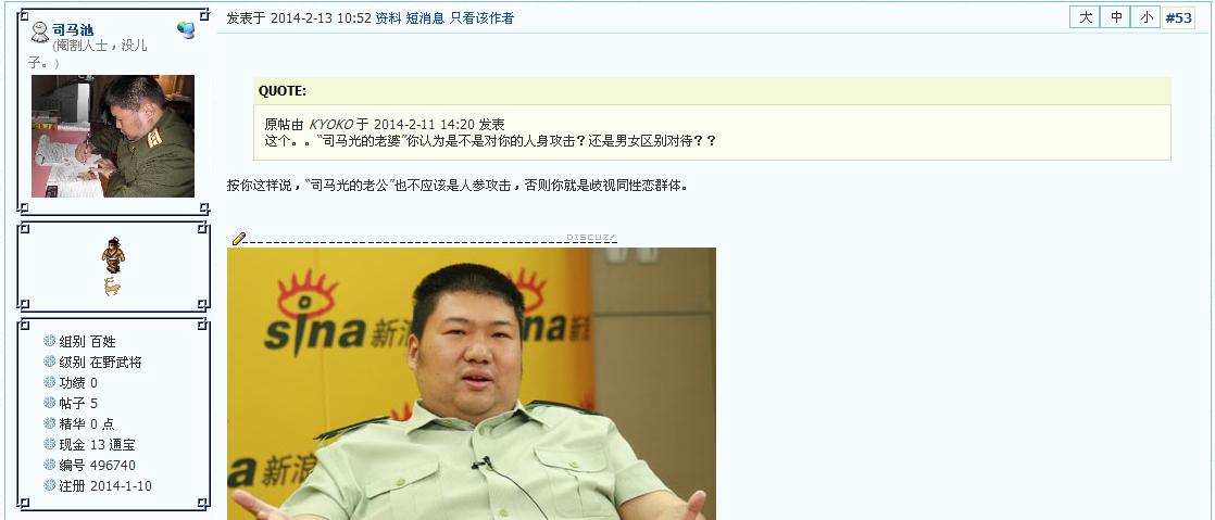 这个。。“司马光的老婆”你认为是不是对你的人身攻击?还是男女区别对待??