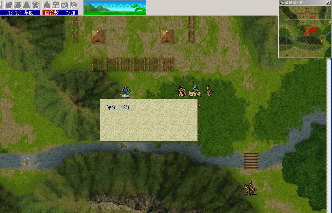 第五回合杨二可以把狗招出来 洪锦上去变旗子 下面也基本上清干净了 此时已经没压力了 最后7回合全灭我军15人全活 满分12分过关