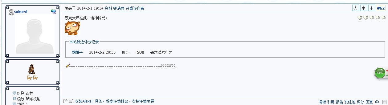 会员sukervl(编号464254),利用马甲公然在登闻鼓恶意灌水,扣500分,封禁一周