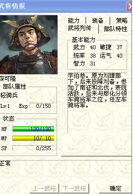 宛如梦幻——织田信长传现在正在玩,剧情不错,虽然娘了点,昨天在玩的时候,在出征界面观看武将列传,然后发现森可隆武将列传没有改过来,虽然是龙套武将,不过龙套也有尊严啊