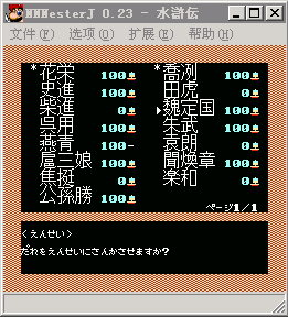修改前先唠叨几句,水浒天命之誓一直是我最爱玩的FC游戏,从小学开始玩到现在,包括非主角在内的(像崔道成、朱武之类的)好汉都