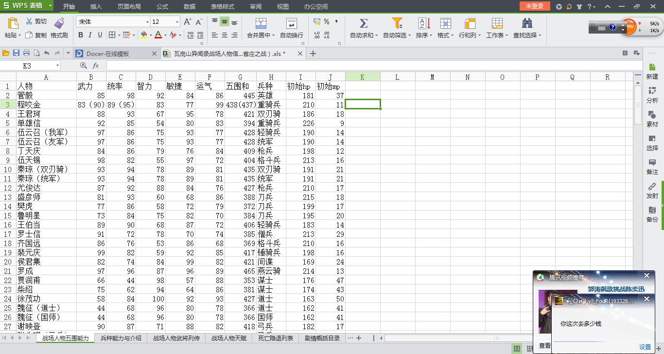 标题: 瓦岗山异闻录战场人物信息汇总表