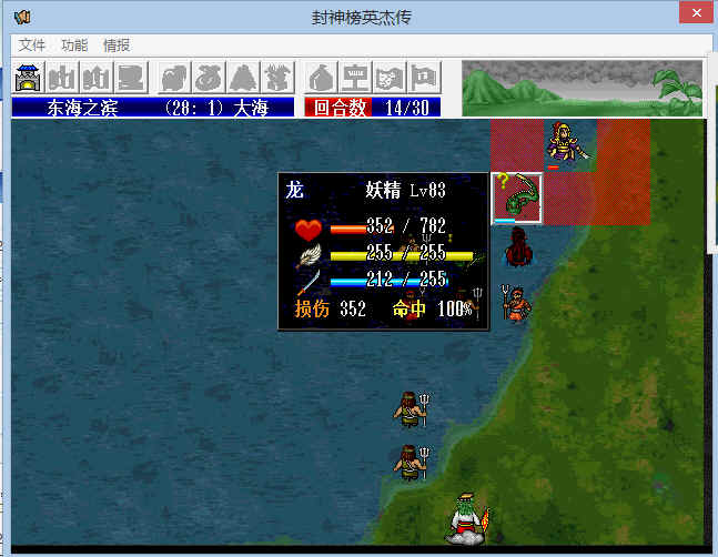 进程按照各位大大说的,先往右跑,狗去上面适当时候占营。公主占完兵营后刚好8回合跑到熬光处对话。杨戬把其他兵吸引后往狗哪儿拉。然后自己跑去打龙。要是自己血还多就炼气化神玩。