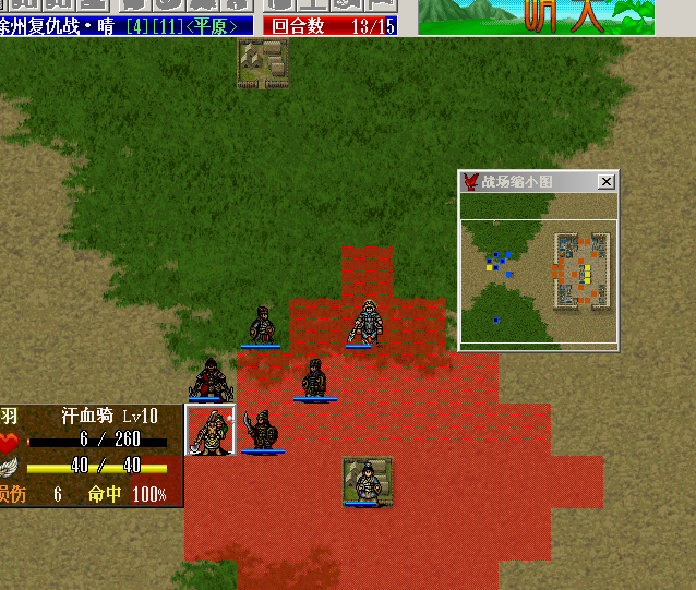 11回合,利用张宝对大夏侯的仇恨,吸引他过来,曹操30点血依然坚挺