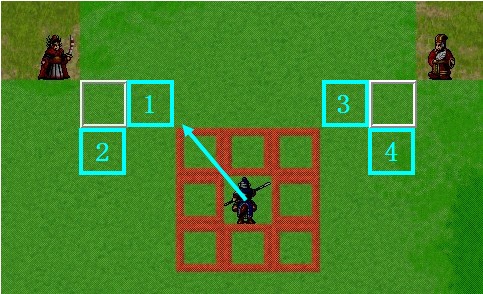 AI的移动规律大致可以分为攻击区域内有敌人和无敌人两种,后者是建立在前者的基础上的,所以首先来讲一下相对简单的有敌人的情况。这个情况里面包含了三个规律,其中有一个规律应该是众所周知了,那就是所谓的“就近原则”,AI会优先选择离自己最近的攻击位。然而这个规律说起来简单,其实里面另有玄机。只是因为在一般情况下不影响我们的判断,所以即使不知道这个玄机也没关系。