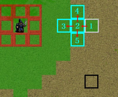前面说的都是AI如何选择攻击位的上下左右四格,离攻击位还差一步,那么AI最后究竟是怎样选择这最后一步呢?