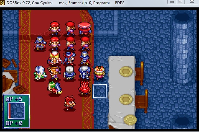 第一回合开始:下方的五个人向上移动,其中亚克需在第二回合移动到(21,10)处卡住右边敌人的进攻路线。左边五个人向右移动。右边的暗魔导士刚好被卡在离亚克7格远的地方,暂时不能放魔法了。待援军开始出现后,费塔加配合玛丽安,每回合杀2个飞兵,杀的速度刚好与飞兵出现的速度持平。在杀掉15个飞兵后玛丽安到达27级,之后杀飞兵经验变成10点,最后一个飞兵可以留着不杀。左边的骑士则要两个人站在地毯左上角卡住。