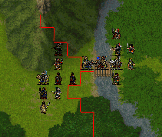 怪不得,我只要一靠前 那些兵都不过来,我自己试了很久,感觉跟你画的线差不多,现在也全灭过关了..