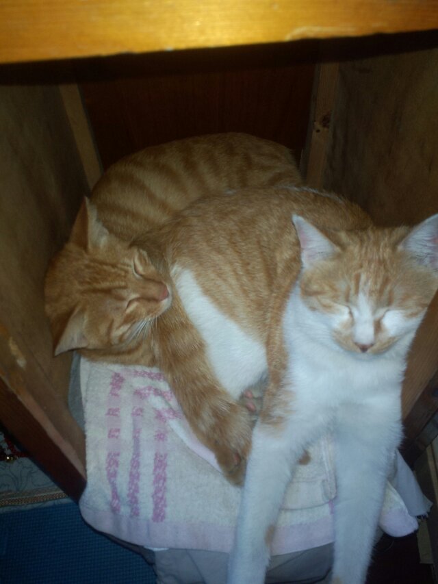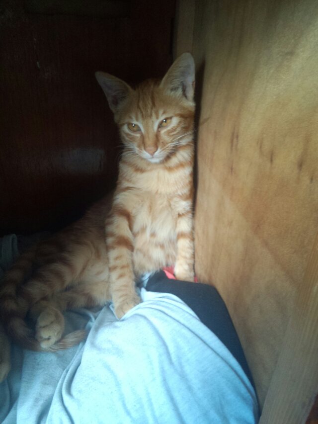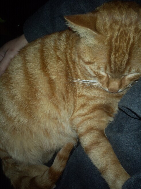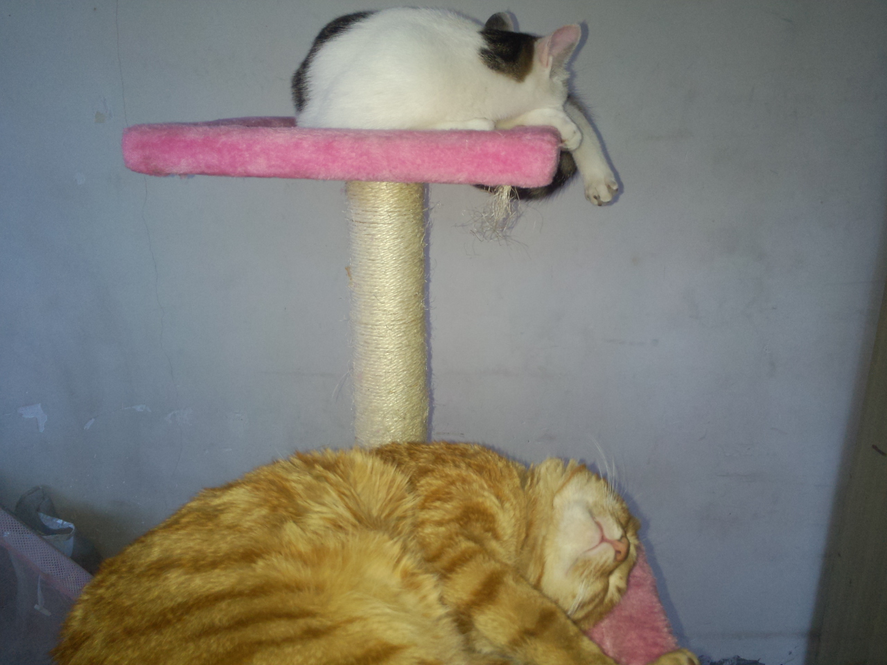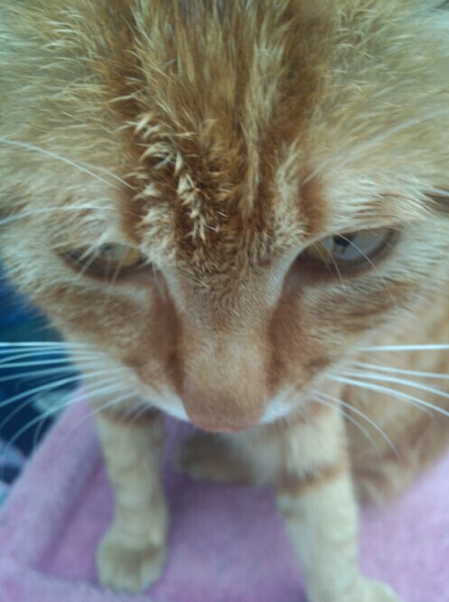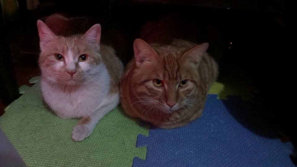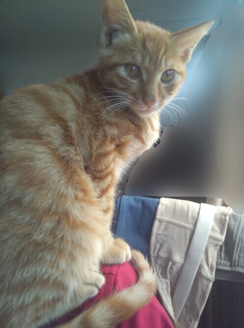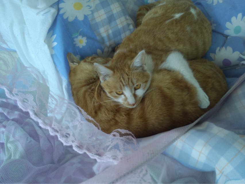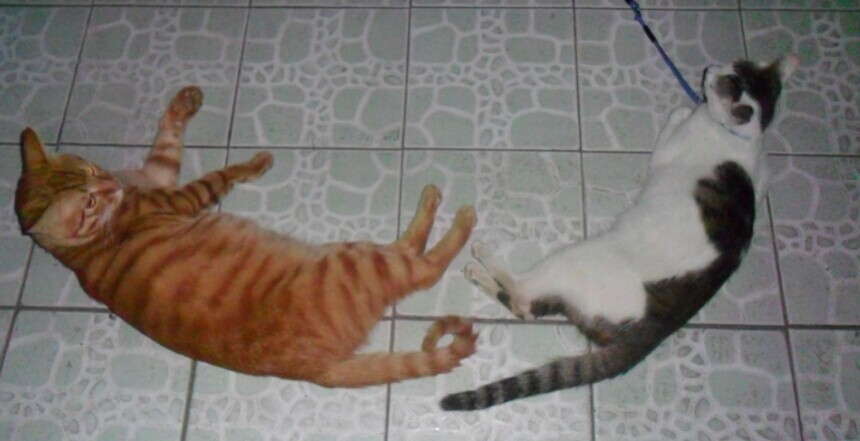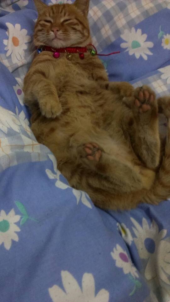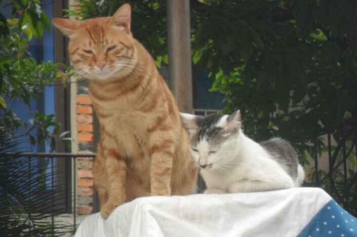 去年9月,招财猫是跟它爸(疑是父子,小个跟大个,品种肤色完全相同)来楼上观光,最终被它爸遗留在楼上。