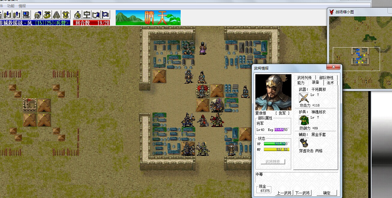 进城之前屠5营就行了。普通版也许廖化一个人站城池能不死,然后张老三那帮人出城先把左边2个将领干掉(徐盛有两当,请用张苞和另外一个人围攻杀之,因为杀他的时候一般是第三回合 这时候张老三已经开始往下走搞诸葛瑾那个营的弓兵了) 利用好友军 能挑掉3个营 断浪+连环+振奋的大夏侯 和万石+龙鳞+玉玺的小夏侯噩梦也能分分钟教黄盖吕蒙做人 绝影贾诩第二回合就可以开始毒右边那个营的2个将领顺便走到2个井栏都可以打到的地方让他们打,这2个井栏就中毒了,再让郭嘉去帮忙9回合之前他们2端掉这个营不是问题,郭嘉赶路的时候还可以输送 其他人掩护曹操 关羽 9回合之前进城就行了 记得进城后要让关羽占住城池