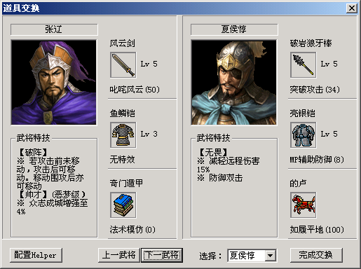 其实物品空白栏也就第一章前面几关有点影响,更难受的还是于禁乐进装备了双飞后只能彼此搞基再不能更换其他物品。这个说到底还是光荣原程序里有点偷懒了,没有在攻防时再对装备的职业有效性进行多一次判断。严格点的程序设计不应该绝对相信物品装备的模块是没有问题的,而应该确保即使装备错了的物品也不能在攻防时候有效使用。当然说是比较简单了,我平时也经常犯这种错。