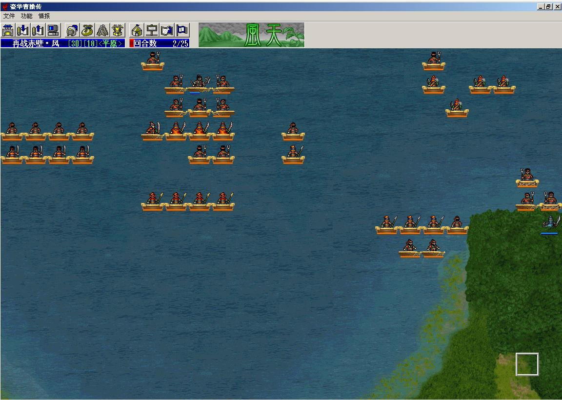 结果发现,敌军小兵只有4个先锋骑会复活,而且诸葛招回的8个武术家和4个刀兵也不出现了(我这样打之前曾试过其它方法,他们会围在诸葛和孙权周围)。最后,在水面上击退4个先锋骑,然后击退孙权全灭过关。但没有得到攻略上的奖励。