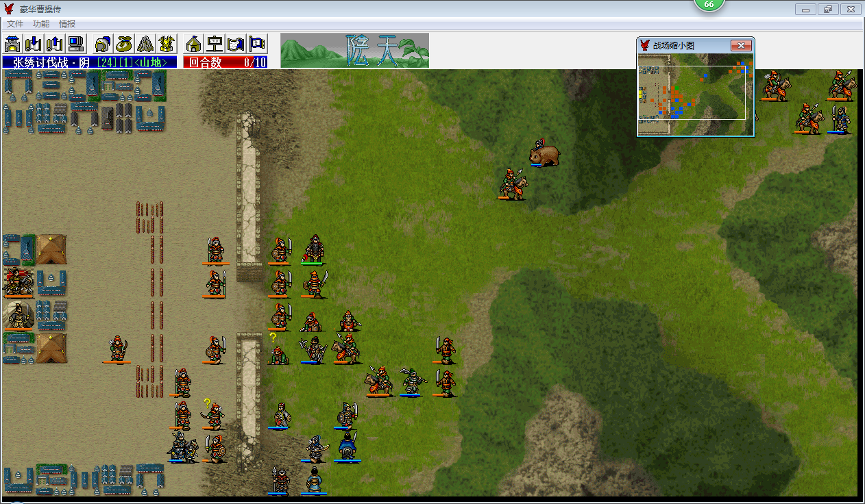 昨天打到第七回合,基本感觉三光无望,暂时继续放弃打下去,主要是移动不足的问题,加上前面有些回合被格挡过多耽误了杀敌,今天重新研究了一下,发现我开局让李典带了遁甲天书,而带狼牙棒的乐进位置如果加强行一路跑的话刚刚好可以推张绣和贾诩两人,最后一推刚好是第十回合。突然看到一丝胜利的曙光,细致重打一下,终于成功三光了。虽然最后RP重新回到我这一方也是逆转的条件之一,但是成功通过起码正视了我最初的想法没错:中路其他人及早拉开空档,使敌军贼军部队和张允部分部队被迫火拼我军最肉最强的李通和许褚部队,获得伤害比的价值最大化。前面的几回合的存档都被楼主覆盖了,就从第七回合开始发几张图吧,留个记号吧,楼主表示不想再尝试这一关的全灭了,所以前面的几回合就无法在这里重现了,而且伪随机状态下同样的打法和走位未必就能得到同样的结果。