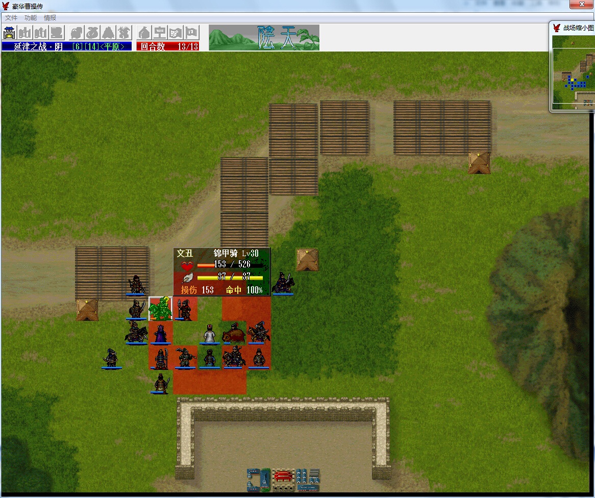 本想尝试出城打的,参考野夫大大或者辞典大大的思路,发现每次输出都是差个位数血量秒杀原来能秒的敌人。无奈尝试守城,不过再想一下没有关羽抢经验也更有助于冲级,说实话我还是第一次守城打延津,本以为13回合时间很充足,打起来才发现没有精神增加BUFF再加上守城的平原地形,很多人输出很无力(比如店货许褚主动攻击白马骑只有52点伤害竟然打不空白马骑的蓝)而且谋士团的输出也差了一个档次,最后还发现郭嘉跟贾诩蓝不够用了。。。