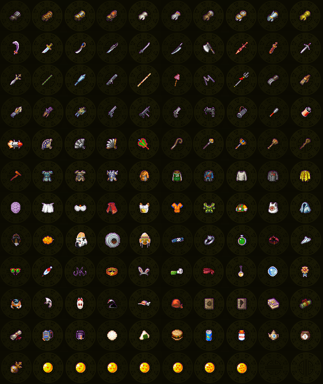 这个是所有宝物的图片预览,由于目前还没有回帖可见的权利,没法和那个有特权的在一个起跑线上,所以宝物的下载就不放啦,如果有人真想要这些图片,可以回复本人的邮箱地址,我把图片发给你,也可以登录百度贴吧——龙珠MOD吧,那里有下载,具体自己找,我就不提供地址啦。