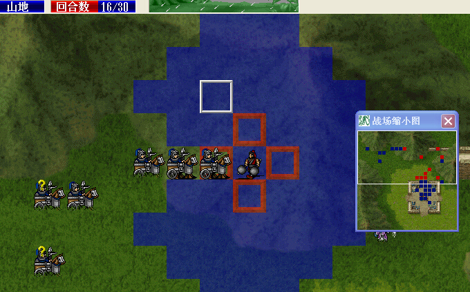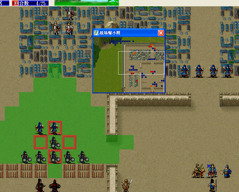 12、管毅和秦琼杀掉一个弓箭手,保证谢映登可以到白框位置。我方刀兵可以直走。
