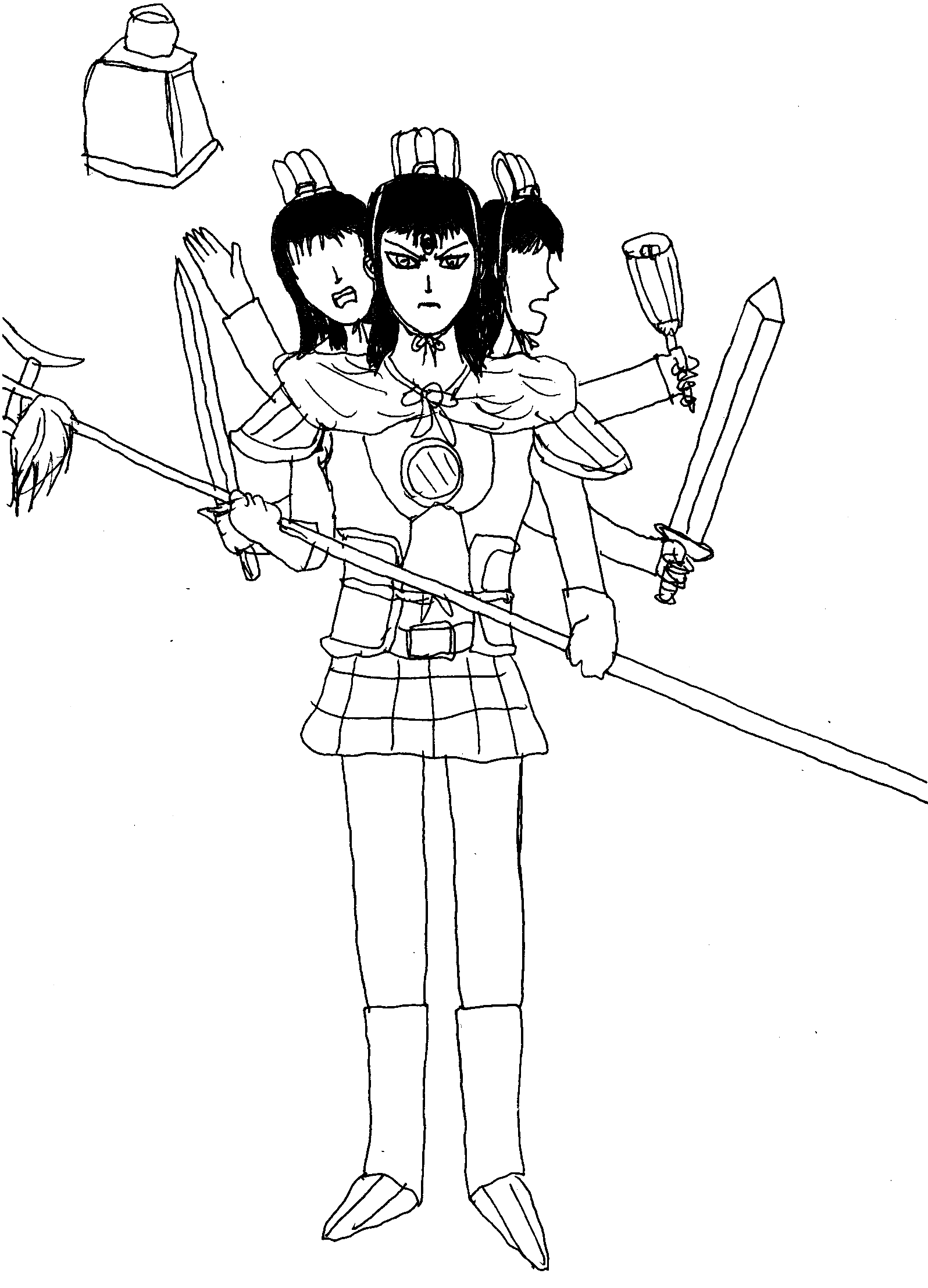 相貌特徵:三头八臂,面如蓝靛,发似朱砂,甚是凶恶......