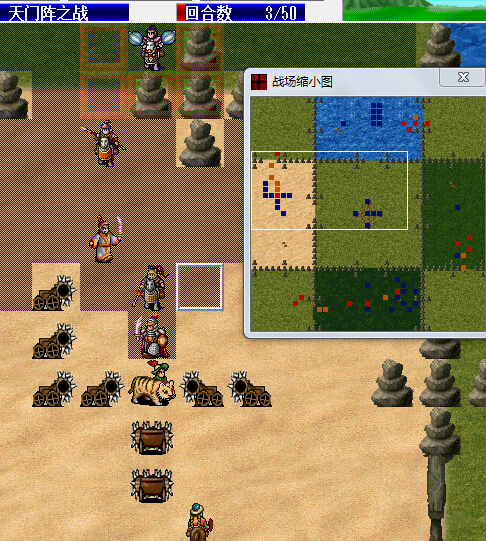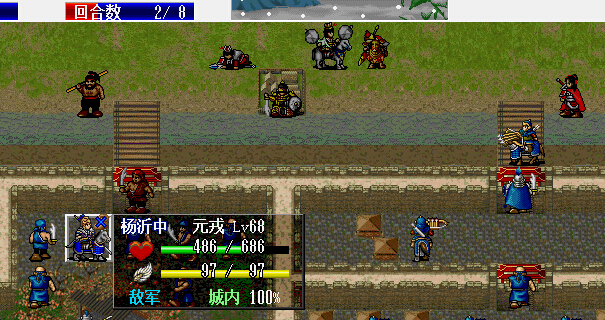 我开场是岳云混乱解除,张宪混乱和麻痹解除,倒也省事,张宪被抛出墙后可以走出杨沂中的吹风范围,省去李琴一次输送。记得以前守门小兵的HP是1的,这次不知为什么有62HP,只能让欧阳从善杀小兵,这也导致了一些走位的不同。王横进关隘,张保去右边挡住弓骑,李琴给岳银瓶加爆发,岳银瓶给自己加速。