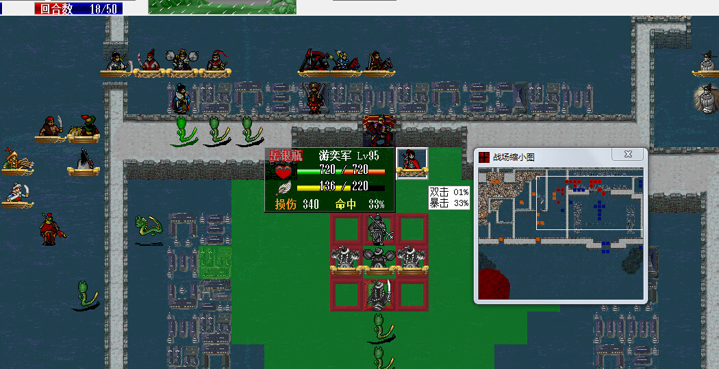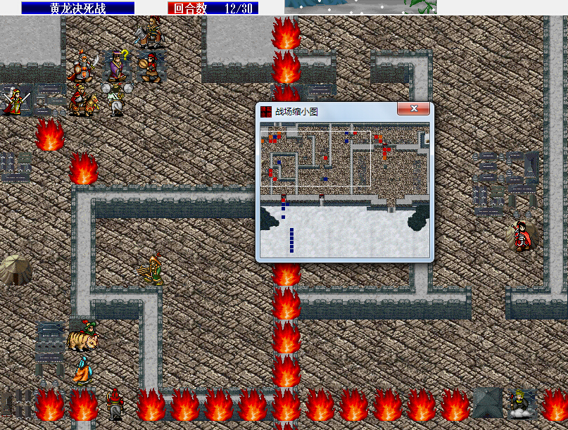 陆文龙配虎头快速清掉下面敌军,其他人捡漏升级,五回合之前有一个我军进入过城内就行了,岳飞提前去山上等韩世忠出现,对话完马上下来离开不利地形。