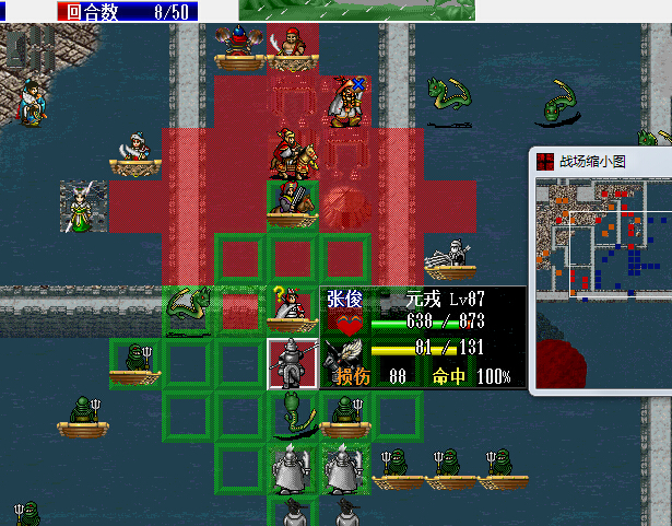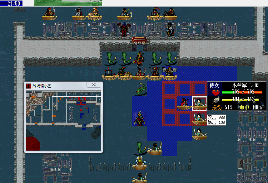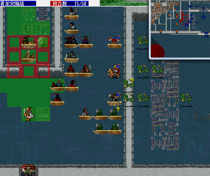 这关的宝物获得条件估计是最让玩家痛恨的一种类型,也就是需要触发友军和敌军的对话,而且还是13个,简直丧心病狂。不过岳飞传的设定还算良心,友军是近战,AI设定是走向目标,敌军目标人物有12个都是坚守原地,只要控制友军的走位就行了。更坑的MOD是杨家将,有个宝物需要触发两个法师的对话,比近战难控制多了。不过杨家将那一关有地形可以利用,还不算最坑。最坑的MOD那是84吕布传,有一关的宝物需要触发两个弓骑的对话才能拿,那个宝物我一般都是放弃掉的。