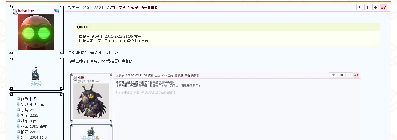 至于“路遇”提到太监联谊会与楼主发帖内容本身有关,后来大过年说些不吉利的话,楼主7楼把“小贩”的言论转嫁给“路遇”,也不无责任。
