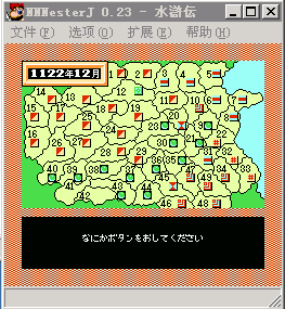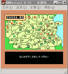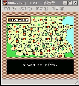 以前试玩过几次,压力较大,通关很困难,构思下重新开始,看看能不能通关,5月之前招了解宝和李瑞兰,7月份在12城扬旗,占领1和2城,9月利用了2次买999毛皮的bug,开局能快点,10月份给解宝加忠,11和12月份砸1000粮加声望到40+,第二年移到2城加声望,剩下就和解宝在1城打野兽加声望,第二年结束47的声望,后面继续打野兽加声望,到1111年8月已经156的声望,手下有解宝、李瑞兰、邬梨、鲍旭、段景住和任原,占领了1、2、13、14、15,就是没人结拜,烦恼,后面想想该怎么打。