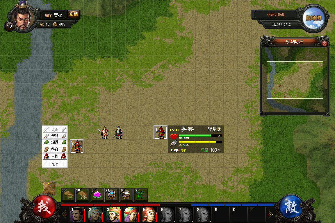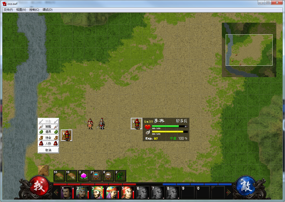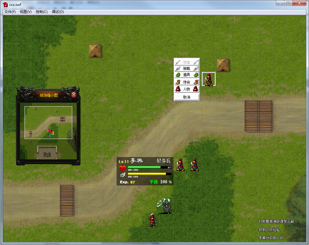 添加了战场人物操作提示面板,因为flash游戏不方便右键提示,所以在提示面板里添加一个人物项,类似于曹操传中的右键功能