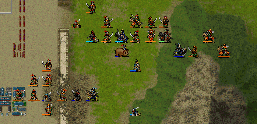 为了黎阳前面进行了痛苦的冲级。拥有了6级装备难度下降了不少,但是这一关仍然具有难度。就我的情况而言有以下几点问题:第一,几乎没有人有转职福利(除曹操两夏侯外,都是27-28级,即使能转职也是后期了),第二,乐进、曹仁、许褚、张郃没到3转,没有3转的特性,但是敌人的同兵种是有的(不过于禁由于特殊的特技,攻击范围跟敌方弓兵一样,他成为了这一关的头号功臣)。第三,这些人跟敌军差了2-3级,能力差距很大。
