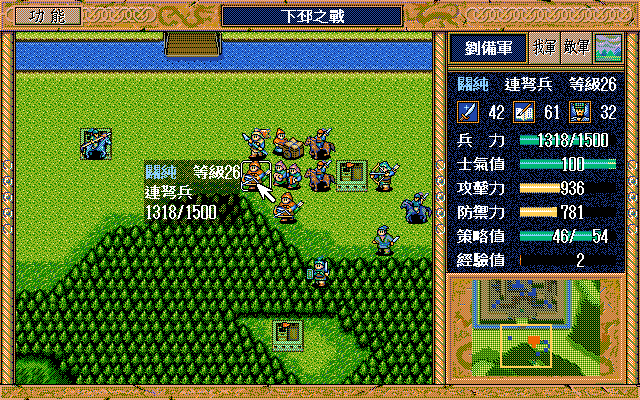 这个打法其实关纯不会亏一回合,我之前为了避免第三回合敌贼兵一个非常小概率的莫名其妙的移动交换了关纯与简雍的出场顺序,结果导致关纯第三回合少回复3点策略,最后少一个策略,只好普攻了鹿寨中步兵两次。