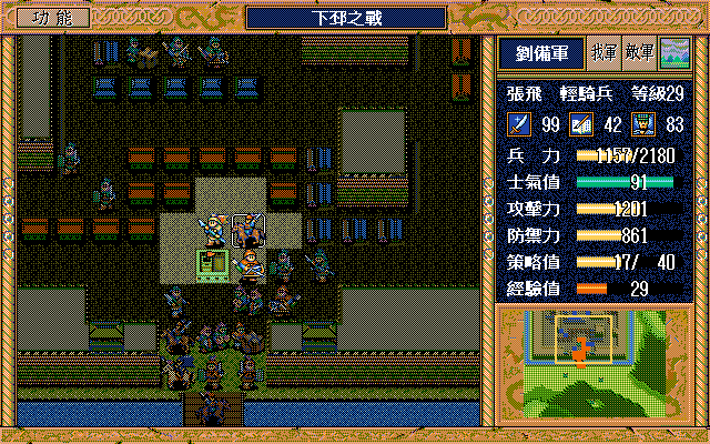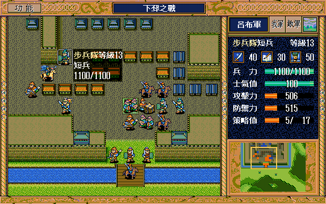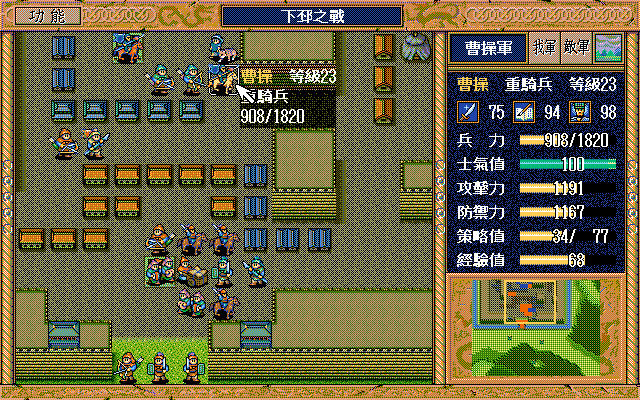 另外,如果随机数完美的话,中间是有机会节约一本焦热书的;就是在进城门的时候,不要牵制中间定位荀彧的步兵,这样刚好糜竺可以普攻这个步兵一次(我打的时候没算这个,以为肯定不够打就多用了一本焦热书)。但是城门布阵必须要S/L许汜变傻瓜,我实在没有耐心S/L这个了。