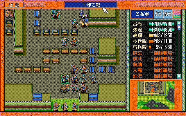 另外,如果随机数完美的话,中间是有机会节约一本焦热书的;就是在进城门的时候,不要牵制中间定位荀彧的步兵,这样刚好糜竺可以普攻这个步兵一次(我打的时候没算这个,以为肯定不够打就多用了一本焦热书)。但是城门布阵必须要S/L许汜变傻瓜,我实在没有耐心S/L这个了。