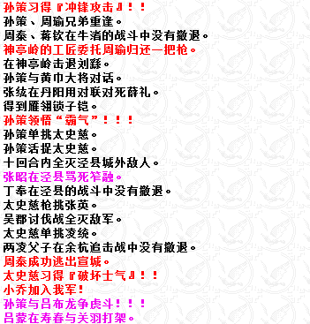 巢湖全灭伏兵呢?三江口活捉蒋干呢?三江口甘宁率先攻入敌军水寨呢?我不知道LZ是否做到但至少截图里一个都没看到