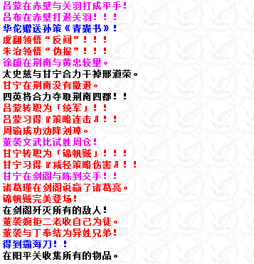 巢湖全灭伏兵呢?三江口活捉蒋干呢?三江口甘宁率先攻入敌军水寨呢?我不知道LZ是否做到但至少截图里一个都没看到