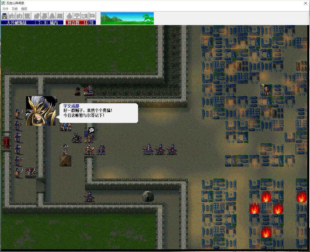 R里遇到宇文成都果断选逃跑反正率真已经满了,S里如图,只用柴绍和管毅的火烧,外加谢映登、秦琼、熊阔海(忘了用王伯当降功)