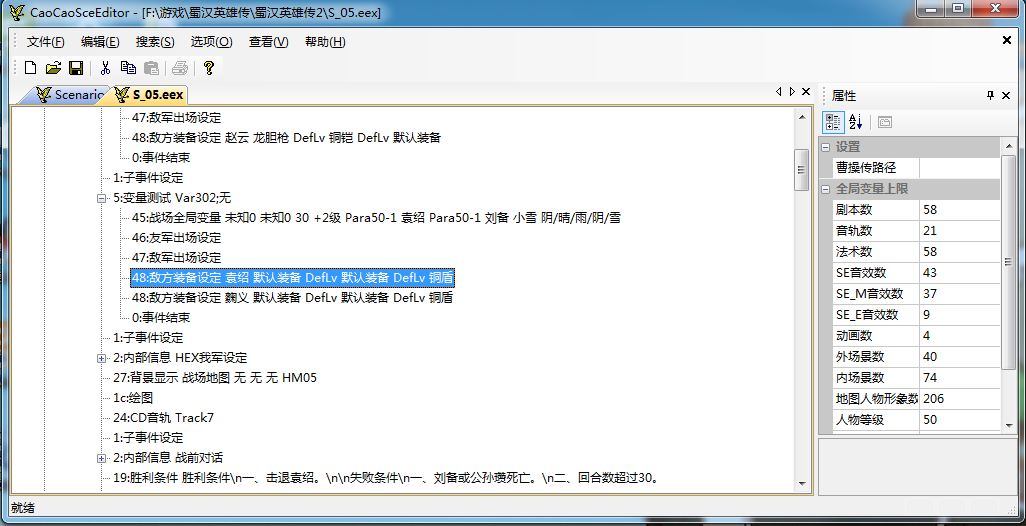 嗯,毅大,我下班回去测试一下。先在此请教一个问题。凡是我改动过的剧本,哪怕只是把人物对话的字改几个,保存修改之后,战场敌人原先的辅助装备就都空了。请问根据你的经验判断会是什么问题呢?
