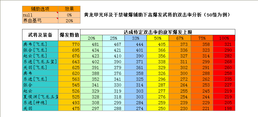 标题: 黄龙甲光环及于禁破爆辅助下高爆发武将的双击率分析与运用实例, 噩梦难度50级为例