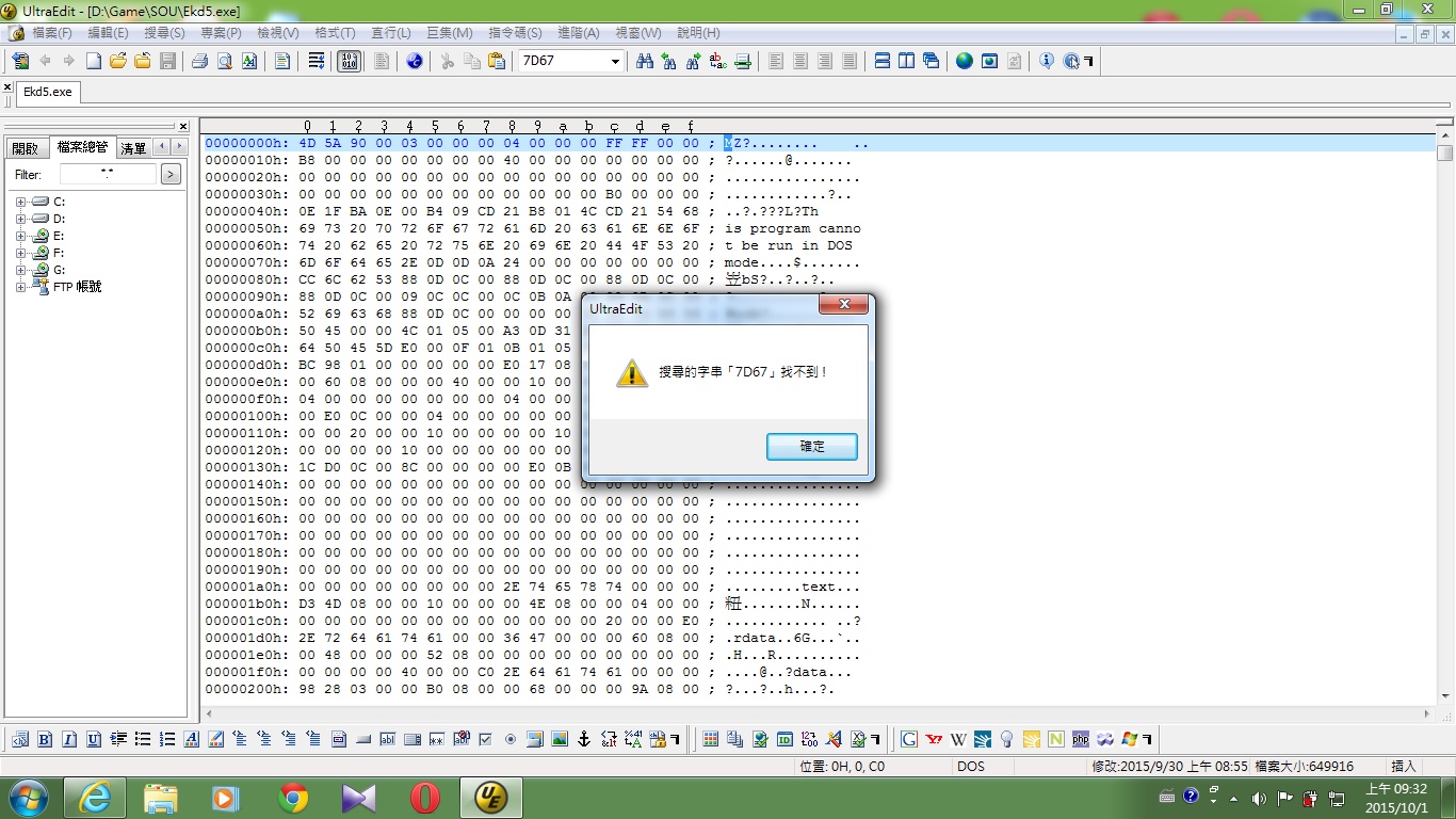 問題是用UE打開後Ekd5 用CTRL+F尋找卻顯示找不到7D67這個地方 那要怎樣改 請問是哪邊出現錯誤 謝謝