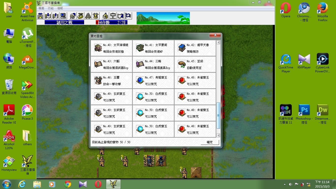 最近在重新玩曹操傳繁體原版遊戲 並且嘗試修改一些東西 而目前在改一開始全寶物圖鑑擴展