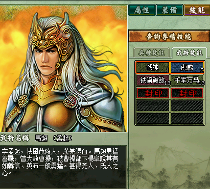 介绍与评价:与同为65级将的魏国曹植相比,马谡就是一个渣,缺乏强力的群体法术是致命伤,好在这货是宝殿将,可以集邮,留着守仓库吧。