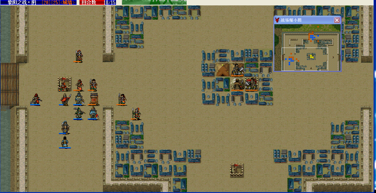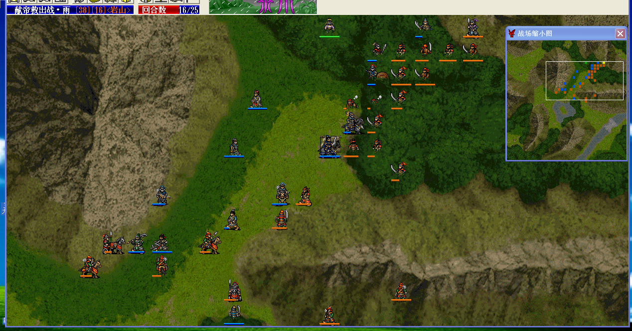 消灭之后用了两个小补给,然后曹操去诱敌,然后后退。这是第九回合,这里可能着急了,因为这次我发现很难坚持到11回合雨天,只好提前想办法勾引张宝了。