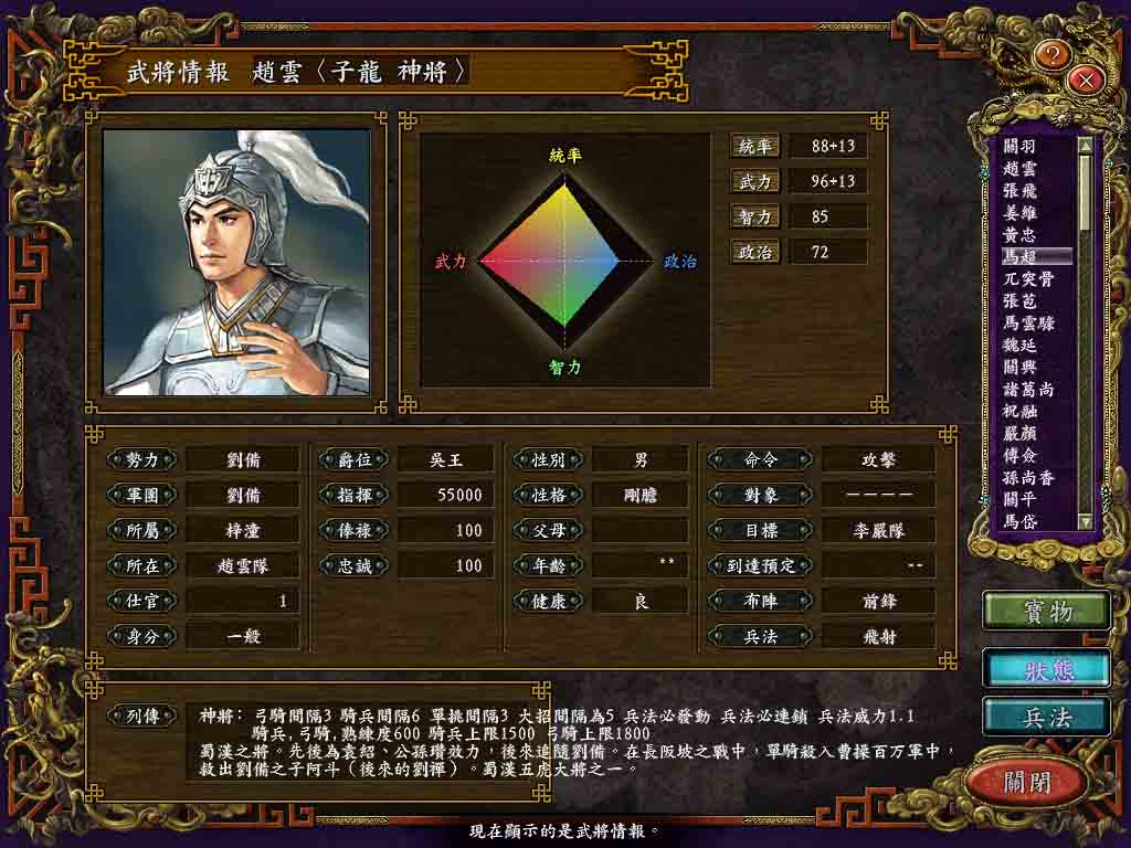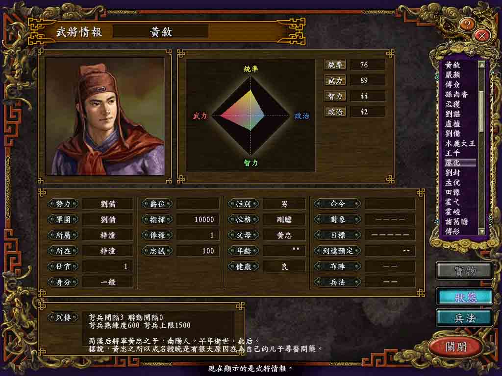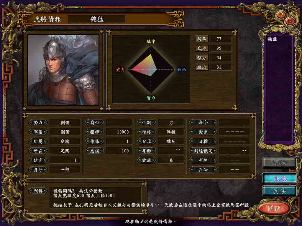 名将补丁要配合的另外一个文件就是D_Person(编辑武将档案)文件, 这里也增加了一些个人的变动, 主要是增强刘家军 :