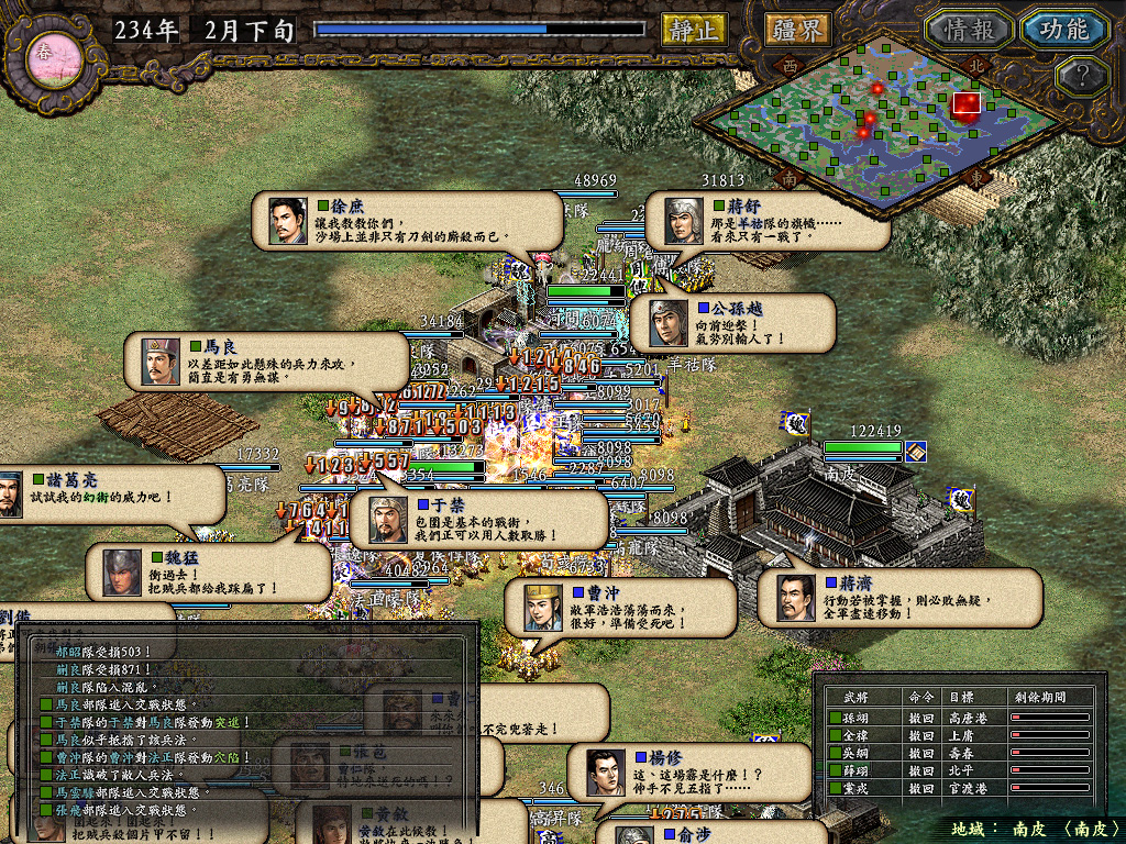 地图总兵力已经几乎达到电脑能够忍受的上限, 因为再增加兵力电脑开始进入秀逗状态(不出兵了). 而且因为总兵力大于总城市人口,所以在第一年内是没有兵役的, 不过反正电脑会源源不断的送兵来, 而且玩家在金城有贼归顺事件.