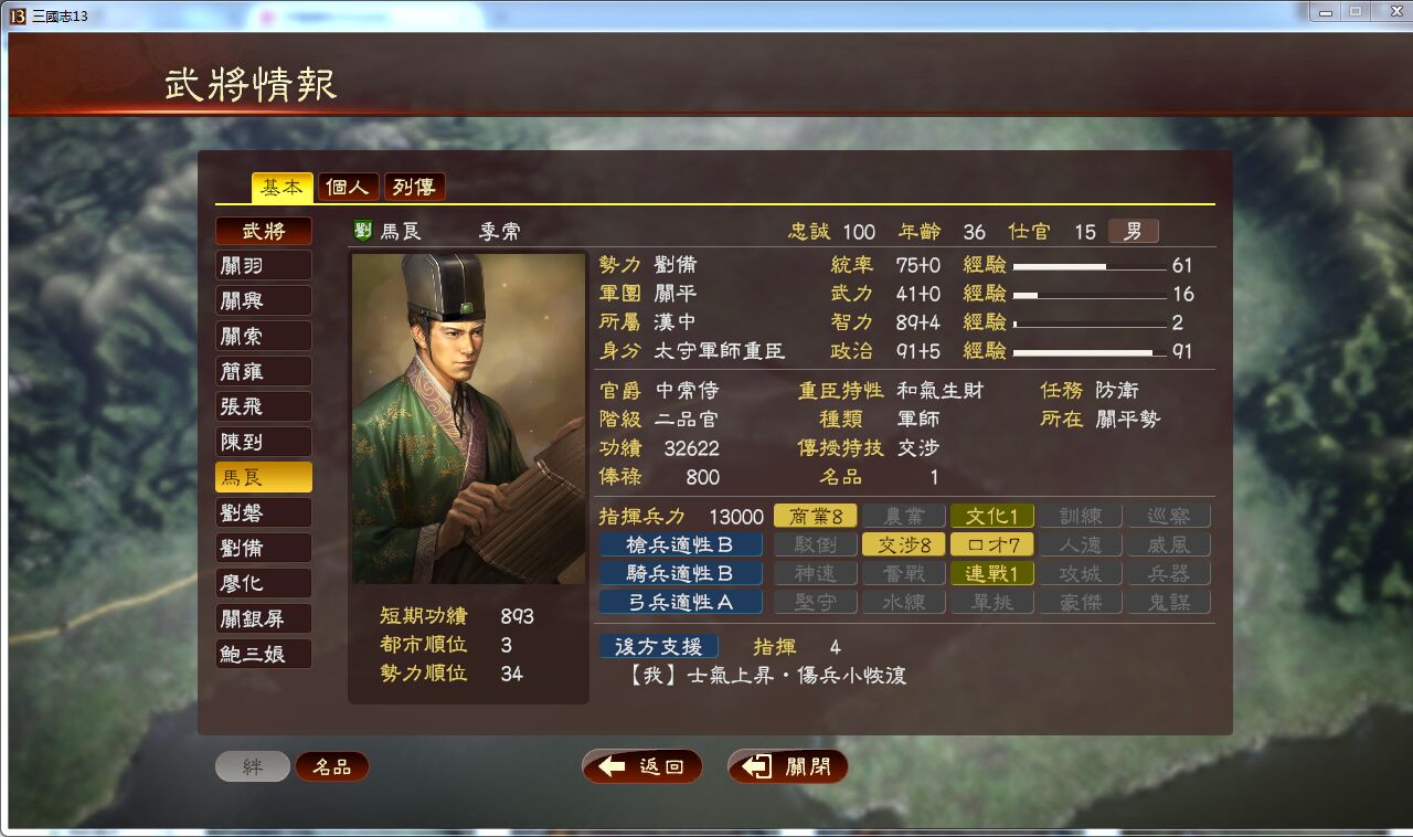 标题: 蜀汉第一神将关平--207三顾上级, 开个三国13战报