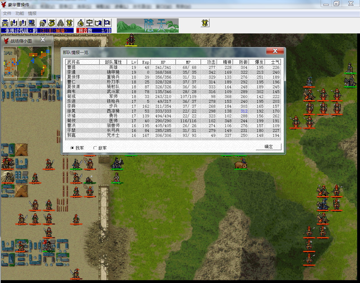 自己的玩法一般般,几乎没玩过曹操传mod,但伪随机的14豪曹好玩,我玩噩梦,也只玩噩梦,卡在这关很久很久了,也没时间,反正有空就自虐,趁着这个春节,有时间重温了一下,认真的分析了好几个达人的帖子,认真参考了野夫的打法,还真给过了,给自己32个赞!